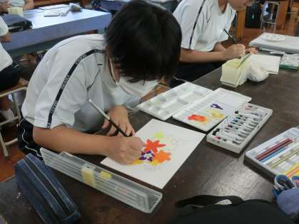 オリジナルの空想画もいよいよデザインが決まり、本番の用紙に書き写していました。色付けの活動では、ものすごい集中力で取り組んでいる様子が伝わってきます。アイデアのたくさん詰まった作品が出来上がりそうです。