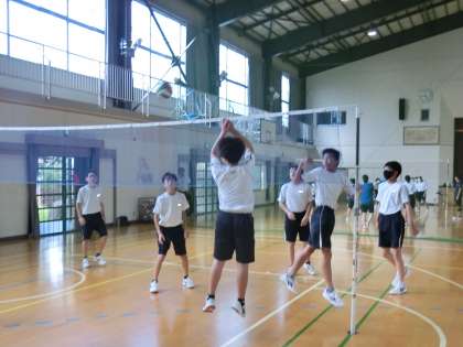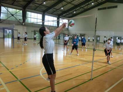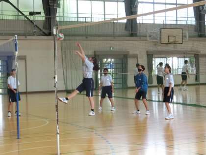 男女別のチームに分かれ、バレーボールのゲームが行われていました。限られた時間内でより多くのゲームを体験しようと、ゲーム間の動きもスムーズに行えていました。チームワークはもちろん、個人の技能のレベルをさらに上げ、白熱したゲームを展開してほしいと思いました。