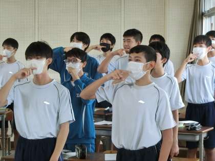 合唱コンクールに向けて、各クラスでの練習が本格的に始まりました。これを受けて、音楽の授業でも、歌う時の姿勢や表情、発声などの基本事項を徹底していきます。クラスの仲間のために、誰もが真剣に授業に臨んでいます。