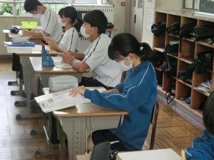 9/14 学習に真剣に向かう 2 公開日 2023/09/14 更新日 2023/09/14 各学年から 2年1組の数学の授業の様子です。 一次関数について学んでいました。1年生の時に学習したことを思い出しながらの発展系の単元です。黒板を見る顔も真剣そのものです。一生懸命学習に向かう生徒の姿は、いつ見ても気持ちのいいものです。