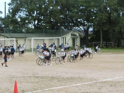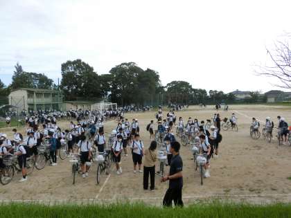今回の訓練は、豊田市学校防災計画における「高岡中学校危機管理マニュアル」に基づいて、非常時の対応【B級体制】を想定し、緊急一斉下校を行い、危機管理への意識を高めることが目的でした。