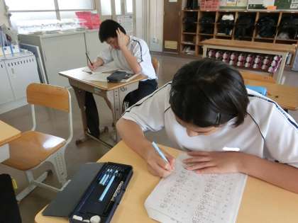 9/15 仲間のがんばりに刺激されて… 2 公開日 2023/09/15 更新日 2023/09/15 各学年から 1,2学級の数学の授業の様子です。 各自の課題プリントを意欲的に進めています。解答が済んだプリント、答え方が分からない問題をどんどん教科担任に持っていています。お互いが仲間のがんばりに刺激されているようです。