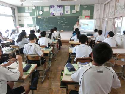 2年4組の社会・地理分野の授業の様子です。
