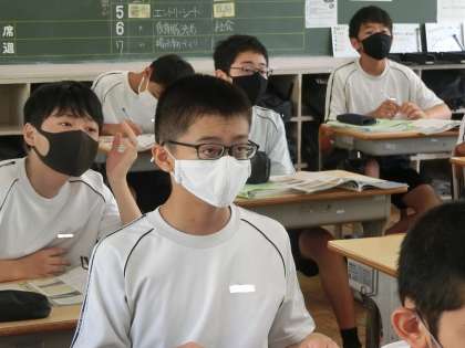 2年5組の社会・地理分野の授業の様子です。