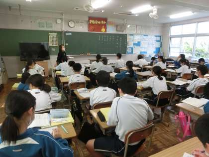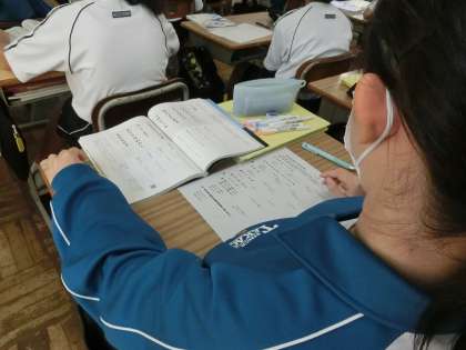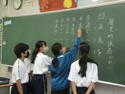 歴史的仮名遣いについて学んでいました。挙手の勢いもがもの凄く、学習に積極的な様子が伝わってきます。クラスの雰囲気の良さも授業に向かう意識につながっているようです。