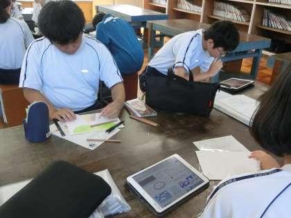 オリジナルの空想画もいよいよデザインが決まり、本番の用紙に書き写していました。色付けの活動では、ものすごい集中力で取り組んでいる様子が伝わってきます。アイデアのたくさん詰まった作品が出来上がりそうです。
