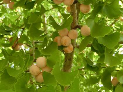 銀杏といえば、恐ろしく強烈な臭いを発することで知られています。強烈な臭いを発しているのは、果肉みたいな種皮の部分。道を歩いていてこの独特な臭いがしてくると、たいていの人は息を止めて一気に通り過ぎていきます。ただ、銀杏が実るのは雌木だけなので、街路樹などはイチョウの雄木が使われることも多いそうです。強烈な臭いの理由もおもしろそうなので、一度調べてみるのもいいかもしれませんね。
