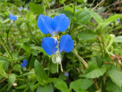 爽やかな青色の小さな花を咲かせるツユクサ(露草)。見かけるとちょっと幸せな気分になります。花言葉には「尊敬」があります。