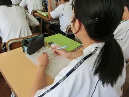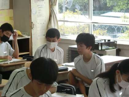 長文読解のプリントに取り組んでいました。まだまだ一人では不安が残るようで、仲間と確認したり、アドバイスをもらったりしていました。