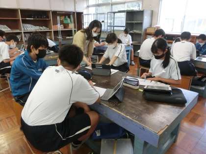 題材は「筆箱」。自身のタブレットで撮影したものを見て、写真を鉛筆だけで模写していきます。立体感はもちろん、影や光の当たり具合をどのように表現するとよいかなど、鉛筆の角度を変えながら技法を探っていました。
