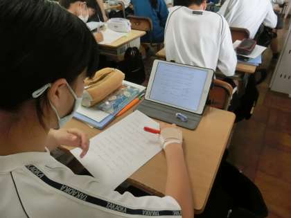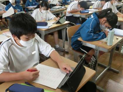 1年4組の数学の授業の様子です。 これまでの学習の復習に取り組んでいました。