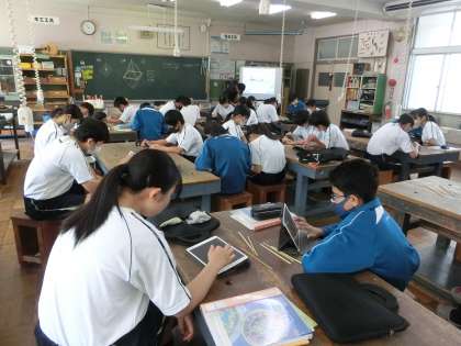 「ヒンメリ」をイメージしたLED照明を作っていくにあたり、前回はその材料のストローの可能性について調べました。そして今回は、いよいよ作品の完成イメージ図をプログラムソフトを使って表していきます。立体的に描くことができるこのソフト。完成した作品を想像しながらの活動に、さらに制作意欲が増しているようです。