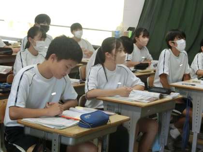 3年4組の社会・公民分野の授業の様子です。