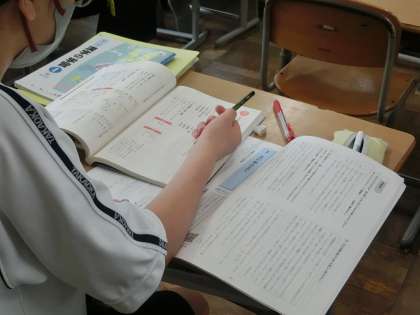 文の組み立ての学習で、「文節どうしの関係」について学んでいました。小学校の時に習った内容を思い出しながら、授業が進められていました。