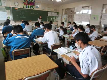 昨日の2年5組の社会・地理分野の授業の様子です。