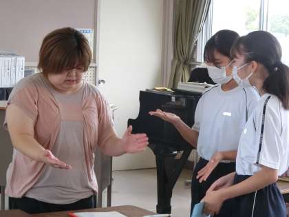 合唱コンで発表する曲のパート練習が行われていました。リーダーがしっかりと指示を出し、何を意識するのかをパート内で確認しながら練習に取り組んでいました。