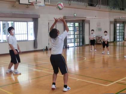 待ちに待ったバレーボールのゲームが行われていました。まだまだラリーが続くまでのレベルではありませんが、仲間のプレーに声をかけ、積極的にボールを拾いに行く姿が印象的でした。