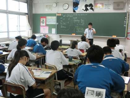 昨日の1年2組の社会・地理分野の授業の様子です。