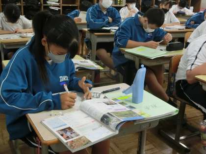 昨日の1年2組の社会・地理分野の授業の様子です。
