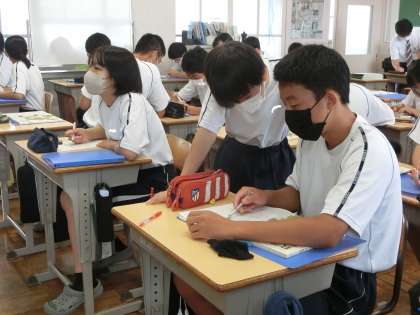 9/22 あきらめないで… 3 公開日 2023/09/22 更新日 2023/09/22 各学年から 昨日の3年1組の数学の授業の様子です。 二次方程式の学習で、前回までに文章問題を立式すること学びました。そして今回は解答のパターンを予想しながら立式するという、少し難易度の上がった問題に取り組んでいました。あきらめず、しっかりと身につけてほしいと思います。