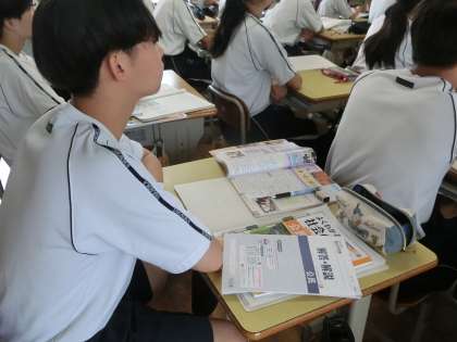 「プレ選挙をしてみよう!」というテーマで、選挙のしくみについて学んでいました。これまでにも生徒会役員選挙などで経験はしていますが、改めてルールを知ることで、3年後に有権者になる意識を高めてほしいと思います。