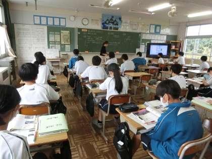 昨日の2年1組の社会・地理分野の授業の様子です。