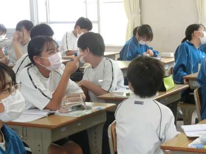 「状態変化で何が起こる?」をテーマに学習が進められていました。固体⇔液体⇔気体の状態の変化に伴い、体積・質量・密度の関係を実験や映像を通して確認していました。