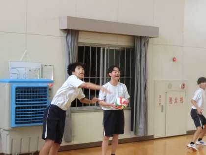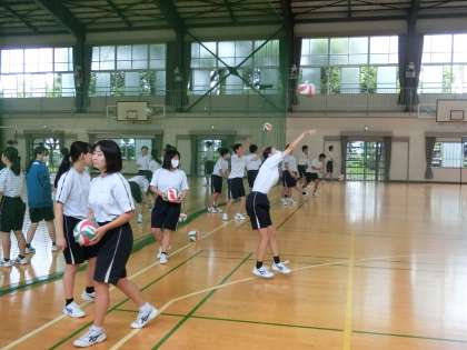 バレーボールの学習で、今日はゲーム前にサーブの練習に取り組んでいました。相手コートに正確に入るよう、試行錯誤しながら何度も挑戦していました。