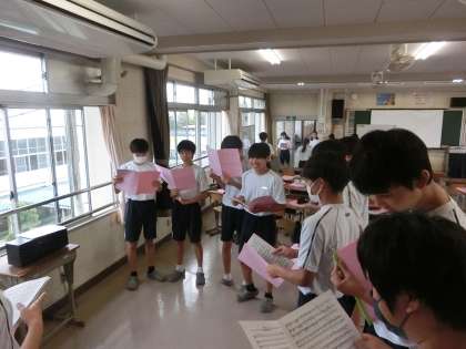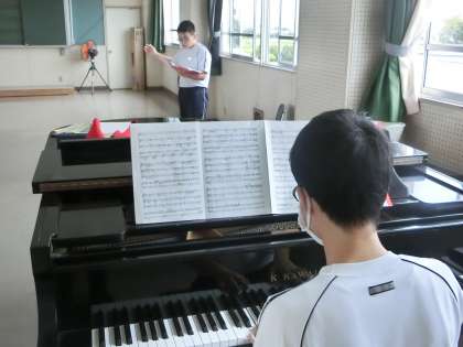 合唱コンに向けてパート練習に励んでいました。すべてのパートにアドバイスを伝えています。別室では、指揮者と伴奏者も練習をしていました。