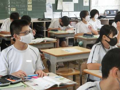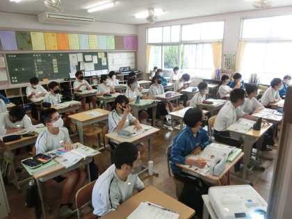 2年4組の社会・地理分野の授業の様子です。