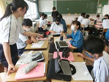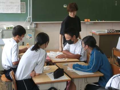 「短歌を味わおう」の学習を経て、今日は「短歌をつくろう」というテーマで学習が進められていました。桃太郎を題材にした各グループでの短歌づくり。まずは個々で考え、その中から情景を最もよく表しているものを選び、つなぎ合わせていきます。仲間の発想に感心しながら、楽しく作品づくりに取り組んでいました。