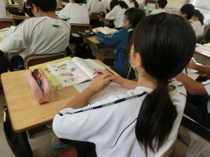 「枕草子」の学習で、歴史的仮名遣いの意味や現代語訳を通して、内容を確認していました。時代によって言葉が変わってきてること、今も使っている言葉が昔も使われていたことなどを知ることができたようです。