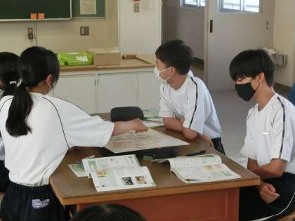 「住まいの空間について知ろう」をテーマに、空間と生活行為を考えていました。各グループに配られたクレヨンしんちゃんの家の間取り。これをもとに生活行為を快適にするための空間づくりやその工夫を自分の家と比較しながら、意見を交換していました。
