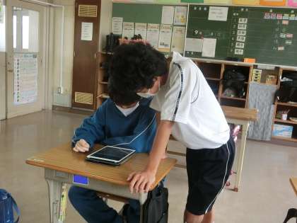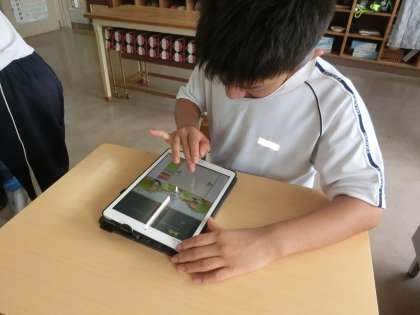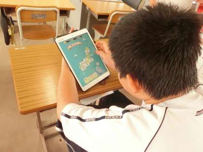 各自の課題のプリントに取り組んだあと、タブレットにある漢字検定のアプリに取り組んでいました。次々出題される問題に意欲的に取り組んでいきます。時間いっぱい集中して取り組んでいた姿に感心しました。