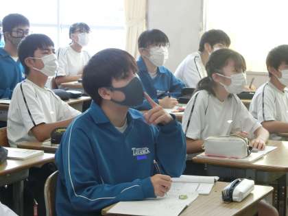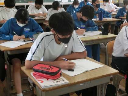 一次関数のグラフの学習のジャンプ課題「グラフの平行移動について深めよう」に迫ろうと、様々な問題に取り組んでいました。生徒の一生懸命考える表情が印象的でした。
