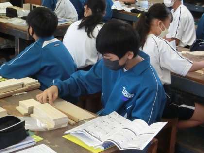「机の上に置けるなら、どんな使い道があるかな…」と、出来上がりを楽しみにしている生徒がたくさんいました。