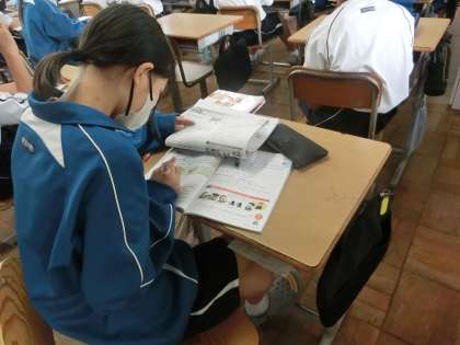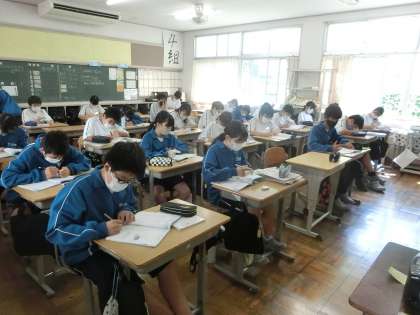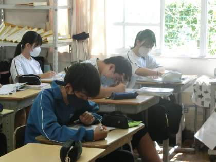 予定されていた教科の授業が急きょ変更になり、各自で自習を行うことになりました。「仲間とおしゃべりになっちゃう?」という心配もどこへやら…。各自が自分に必要だと思う教科の学習に黙々と取り組んでいて感心しました。
