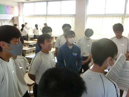 楽譜をしっかり読み込んで歌い方の確認をするクラス、表情をつくる練習に励むクラス、他のクラスの合唱の様子を見て、良いところを取り入れようとしているクラスなど様々です。今後の練習のヒントを得たり、やる気が増した時間となったようです。