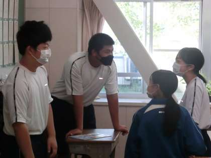 グループでの会話も少しずつ定着してきた1年生。高中生を象徴する笑顔で一日がスタートしました。