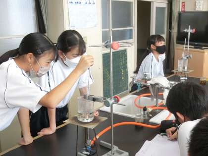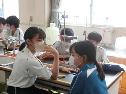 状態変化を調べる実験が行われていました。予想通りの結果が出るか、考えた理由と比べながら、変化の様子をじっくりと見ていました。