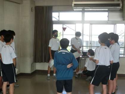 合唱コンに向けて、パート練習が行われていました。2年生にもなると、やはりパートリーダーがしっかりしており、1回ごとに練習の目標や振り返りをしっかり述べています。また、様子を見に来た担任も笑顔で応援していました。