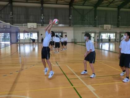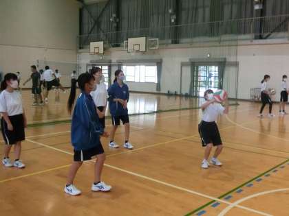 バレーボールのゲームが行われていました。男女別のグループですが、対戦は性別関係なし。男子はパワーで、女子は笑顔で対戦している様子が印象的でした。