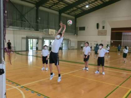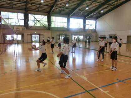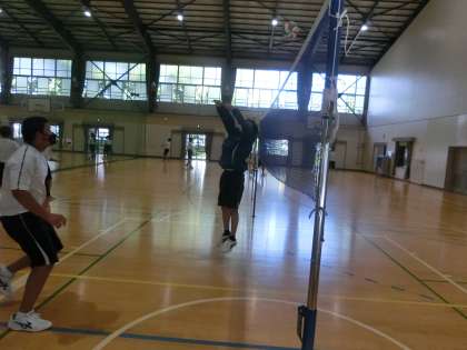 バレーボールのゲームが行われていました。男女別のグループですが、対戦は性別関係なし。男子はパワーで、女子は笑顔で対戦している様子が印象的でした。