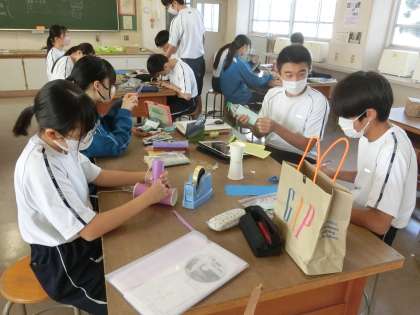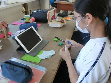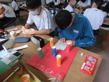保育実習に向けてのおもちゃ作りに取り組んでいました。面白さや安全性を確認しながら完成を目指しています。園児たちにいかに楽しんでもらうか、本気で考えています。
