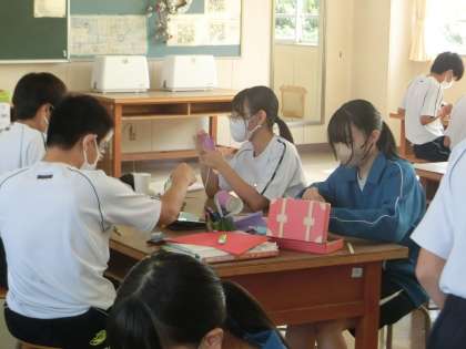 9/28 おもちゃづくり 3 公開日 2023/09/28 更新日 2023/09/28 各学年から 昨日の3年4組の家庭科の授業の様子です。 保育実習に向けてのおもちゃ作りに取り組んでいました。面白さや安全性を確認しながら完成を目指しています。園児たちにいかに楽しんでもらうか、本気で考えています。