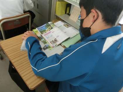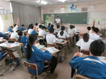 昨日の1年5組の社会・地理分野の授業の様子です。