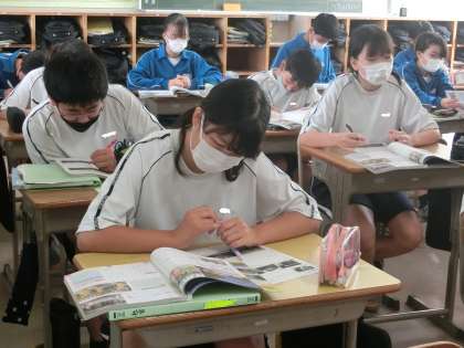昨日の1年5組の社会・地理分野の授業の様子です。