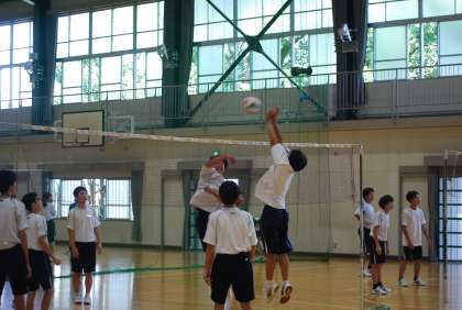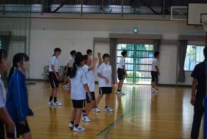 バレーボールのゲームで、チームワークを発揮して戦うことを目標として取り組んでいました。男女別のグループであっても、対戦は混合。女子チームが男子チームからポイントを取り、大喜びしている姿が印象的でした。