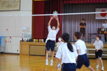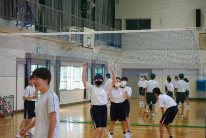 バレーボールのゲームで、チームワークを発揮して戦うことを目標として取り組んでいました。男女別のグループであっても、対戦は混合。女子チームが男子チームからポイントを取り、大喜びしている姿が印象的でした。