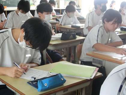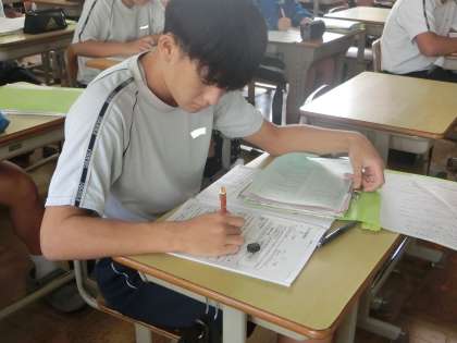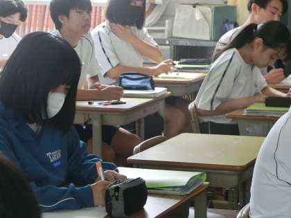 「a flying bird」「a bird flying sky」の違いや使い方を学んでいました。前者を「前置修飾」、後者を「後置修飾」というそうです。英語独特の文法を知り、演習問題にも取り組んでいました。